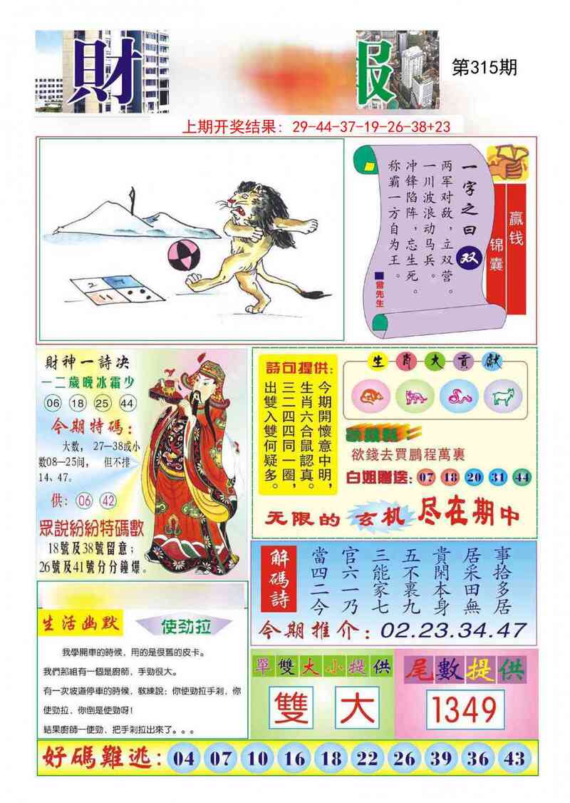 | 315期⑤码 | 17.42.33.26.44 | 开??准 |