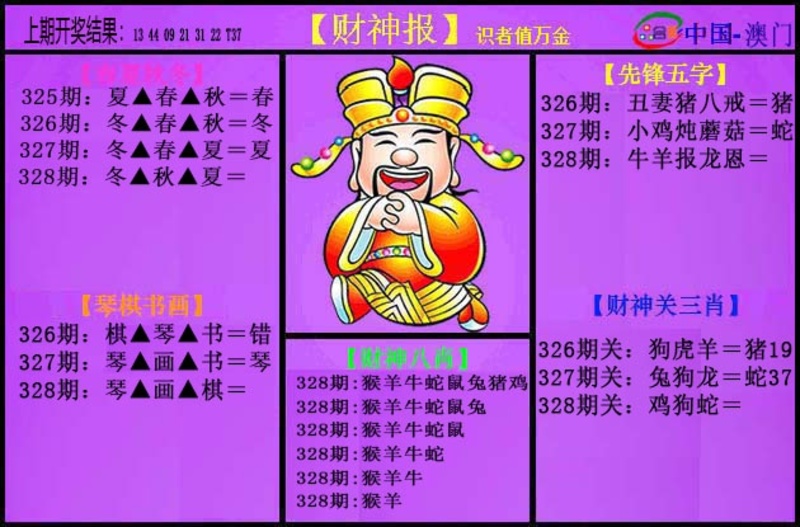 | 327期一肖 | 蛇 | 开:蛇37 |