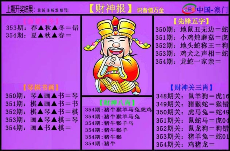 | 354期三肖 | 鸡马蛇 | 开??准 |