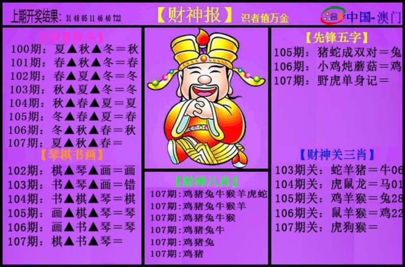 102期六肖 鼠蛇马虎羊龙 开:猪20