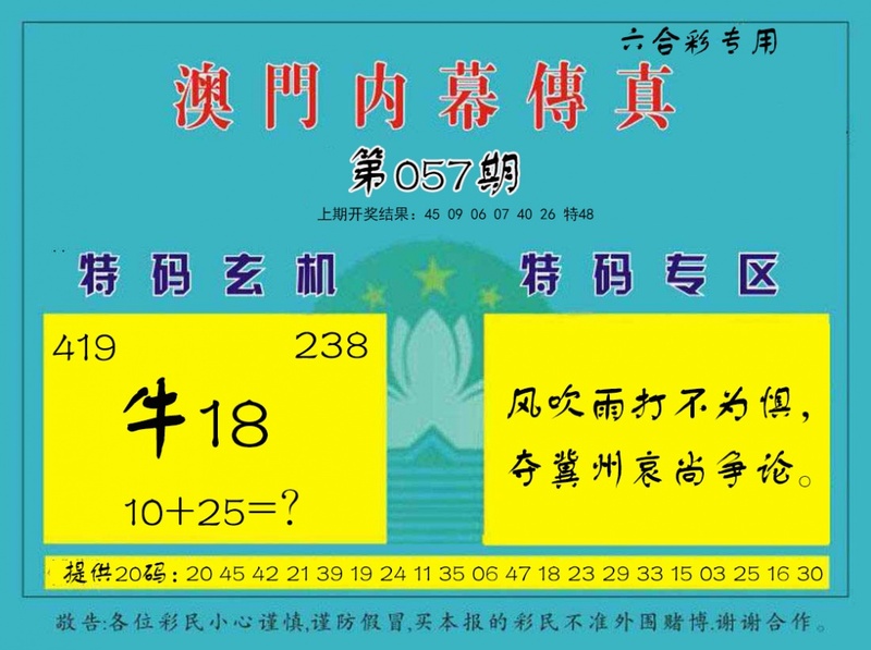 | 057期二肖 | 羊鸡 | 开??准 |