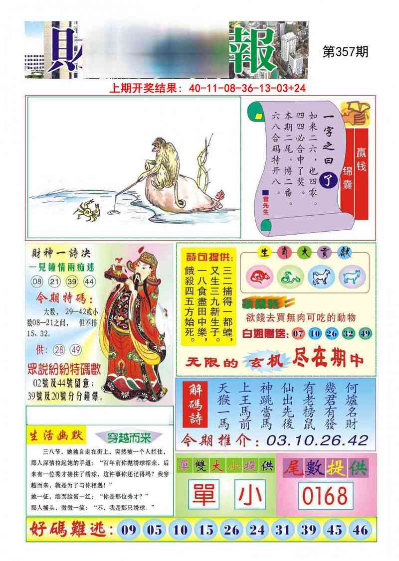 | 357期⑤码 | 33.25.38.46.36 | 开??准 |