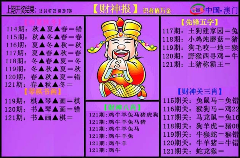 | 121期三肖 | 狗鼠猪 | 开??准 |